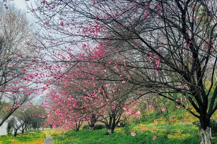 赏花点位:东湖梅园、花乡茶谷、竹叶海公园、沙湖公园等