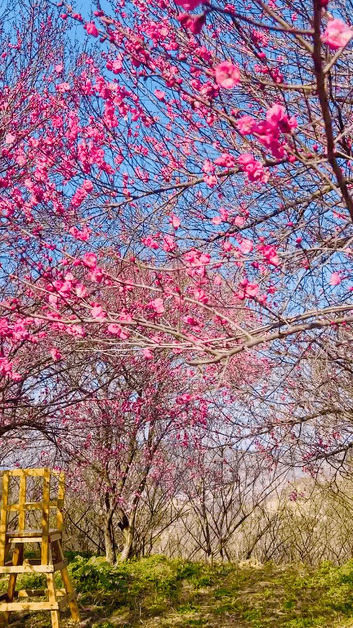 这里位于黄陂,山谷里生长着10万余株梅花树,多是红梅,目前开了约3成,花期较往年提前了近一个月。这大概是武汉今年冬天开得最早、最盛大的一批梅花。