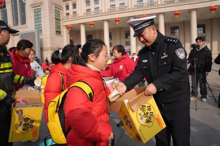 现场张灯结彩、暖意融融。来自外省的返乡旅客王先生感慨道:“刚下火车就感受到了武汉的温暖,交警同志细心指引,还有爱心企业的暖心助力,这份关怀太实在了!”