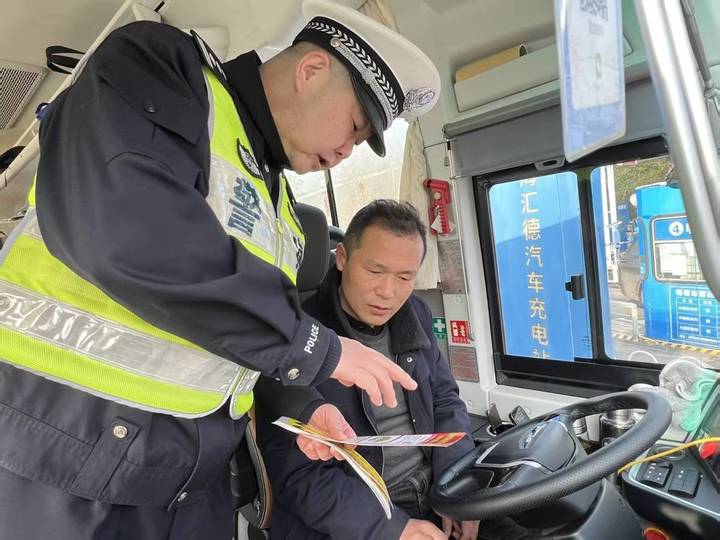 江夏交警以“警”色护平安,春运前召集客货运企业召开专题会、签订承诺书。民警在检查长途货车时,关切提醒疲惫驾驶人休息,还递上宣传手册:“牢记不酒驾、不超速,一路平安!”此外,江夏交警在服务站设置便民服务区,为旅客提供暖心帮助,走进金槐社区开展农村宣讲。
