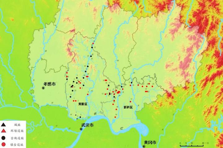 图:武汉市举水、倒水、滠水流域夏商周遗址分布图