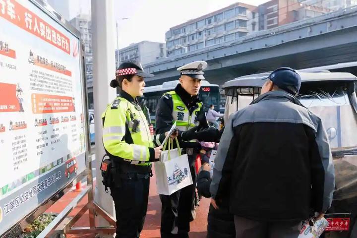 除解放大道解放公园路口外,江岸交警还在沿江大道三阳路、建设大道黄浦大街等重点路口路段同步开展此次宣传活动。此次系列活动以群众喜闻乐见的形式普及交通法规,旨在让文明出行习惯深入人心,助力市民提升文明交通意识与风险规避能力,共同筑牢春节期间道路交通安全防线。