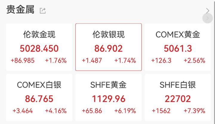 继昨日暴力反弹后,国际贵金属继续大涨!