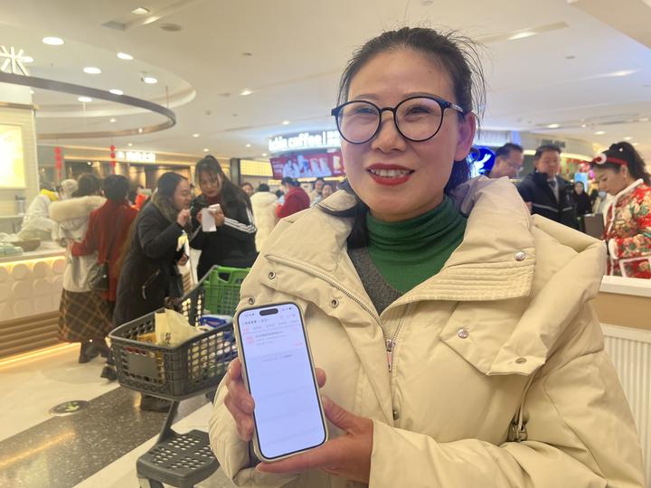孟女士展示自己抽到的奖金。 雷心蕊 摄