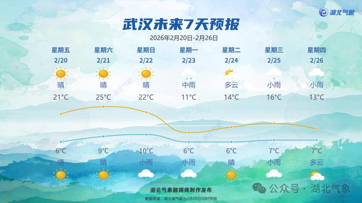 预报来源:湖北省气象台2026年2月20日08时预报
