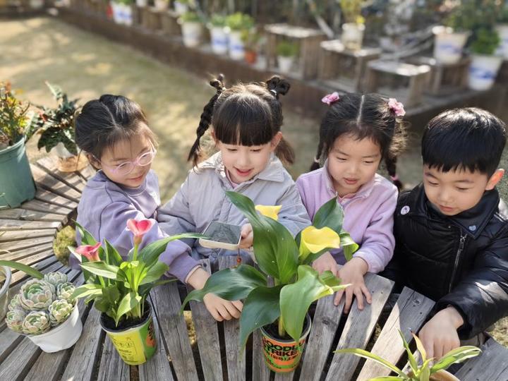 更具特色的是“豆包”软件全程护航的AI植物成长档案,孩子们手绘“小马苗”模样,老师协助将观察心得语音输入豆包,生成“幼儿手绘+AI文字”的专属成长册,定格绿植与萌娃的成长点滴。