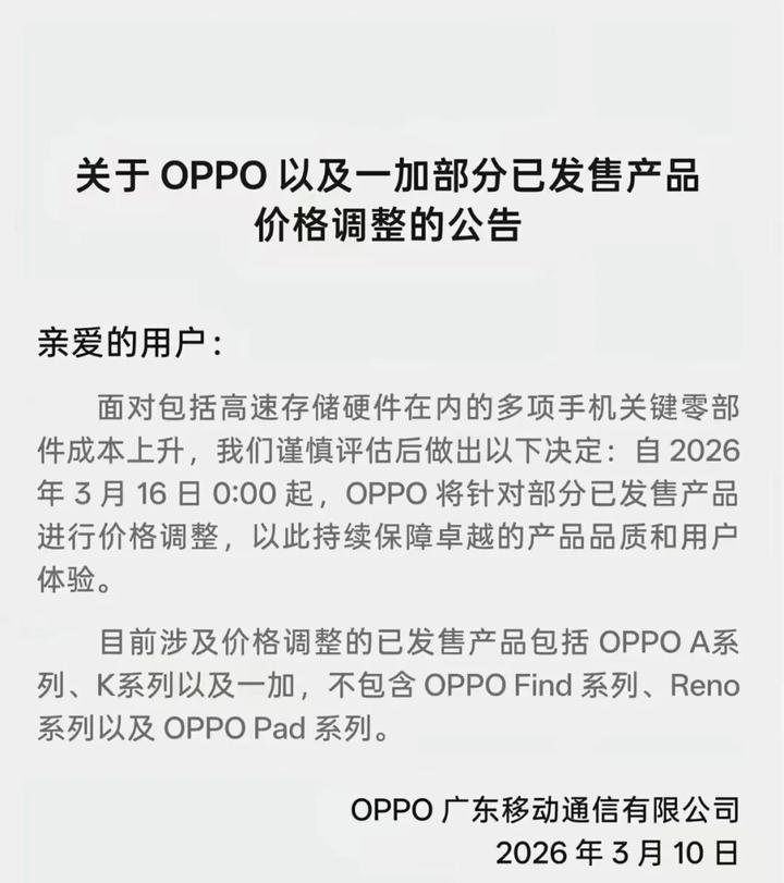 vivo武汉一家专卖店的工作人员表示,尽管vivo品牌主力机型暂未调价,但其子品牌iQOO已于3月18日上午10点起全线涨价,平均涨幅约300元。由于此前几天已提前告知顾客,3月17日当天便有不少顾客集中到店购买。OPPO武汉一家门店的工作人员则称,该品牌A系列及K系列手机自3月16日起开始涨价,平均涨幅在300至500元之间,主要原因是内存与芯片成本上涨。不过,因近期并非周末、不属于手机销售高峰期,涨价的具体影响目前尚无法判断。同样,荣耀武汉一家门店的工作人员也确认,近期店内部分手机平均涨价300至500元,主要原因也是芯片价格上涨,但顾客购买并未受到影响,到店购机的人数依然较多。
