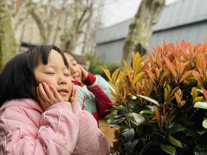 “宝贝们,听听风的声音,看看花朵在跳舞。”在余艳老师的轻声引导下,有的孩子仰头看天,有的蹲下闻花,还有地闭上眼睛,静静感受风从耳边掠过。十分钟的户外活动,既帮助消化,也让孩子们从兴奋的游戏状态,慢慢“调频”到安静模式。