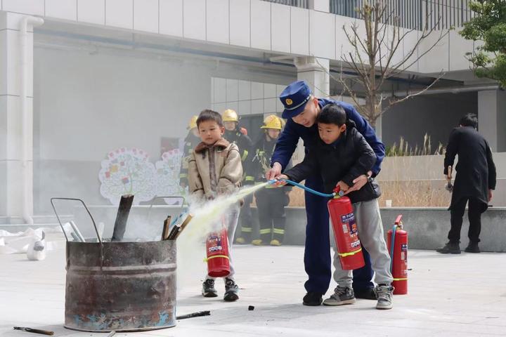 “提、拔、握、压,记住这四个步骤,就能正确使用灭火器!”灭火实操区里,消防员的实操教学格外吸睛。在详细演示灭火器使用方法、讲解安全注意事项后,教职员工率先上阵,亲手操作灭火器,精准扑灭油桶内的明火。一旁的孩子们看得目不转睛,兴奋的尖叫声此起彼伏,纷纷高举小手想要亲身体验。消防员暖心俯身,手把手指导孩子们实操灭火,让大家在亲身实践中掌握灭火技能,真正实现“学中练、练中会”。