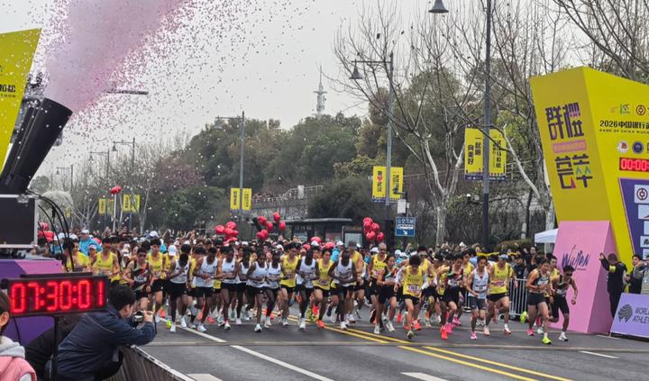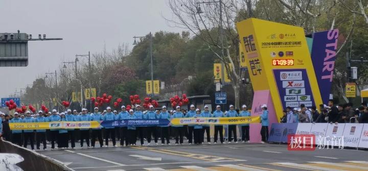 早上7时30分,2026武汉马拉松在汉口沿江大道三阳路口鸣枪起跑!