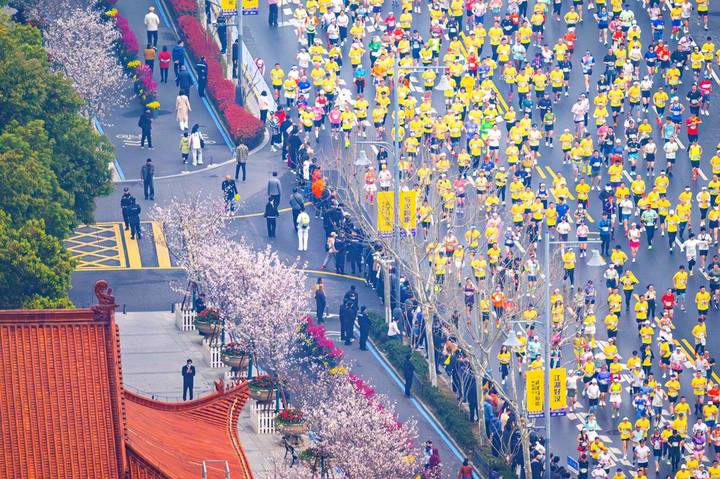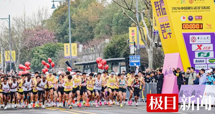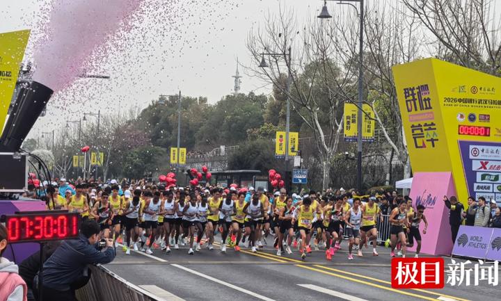 早上7时30分,2026武汉马拉松在汉口沿江大道三阳路口鸣枪起跑!