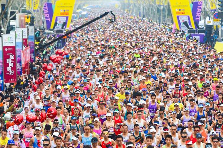 3月22日上午7时30分,2026武汉马拉松正式鸣枪起跑。(湖北日报全媒记者 任勇 摄)