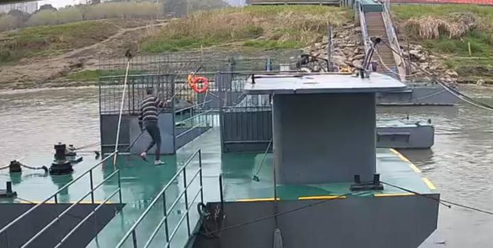 武汉长江二桥城管码头上的几段监控视频,还原了这感人的一幕。3月22日清晨6点57分59秒,一名女子出现在江边。8分多钟后,女子脱下外套,径直走向江中。很快,女子没入冰冷的江水里,漂向下游50多米开外的二桥城管码头垫垱。