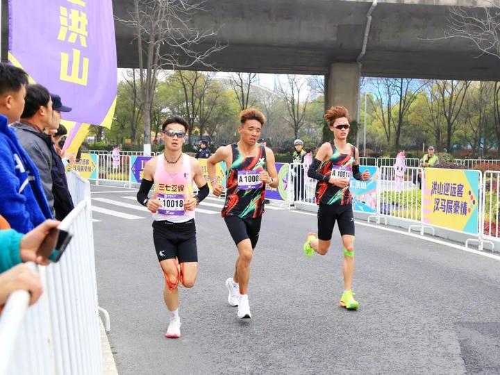 选手们的身影出现在洪山赛段