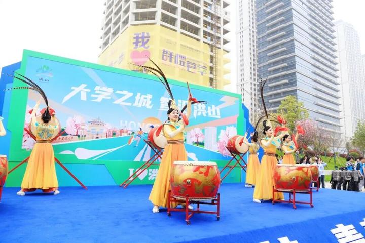 “大学之城 智汇洪山”的标语格外醒目