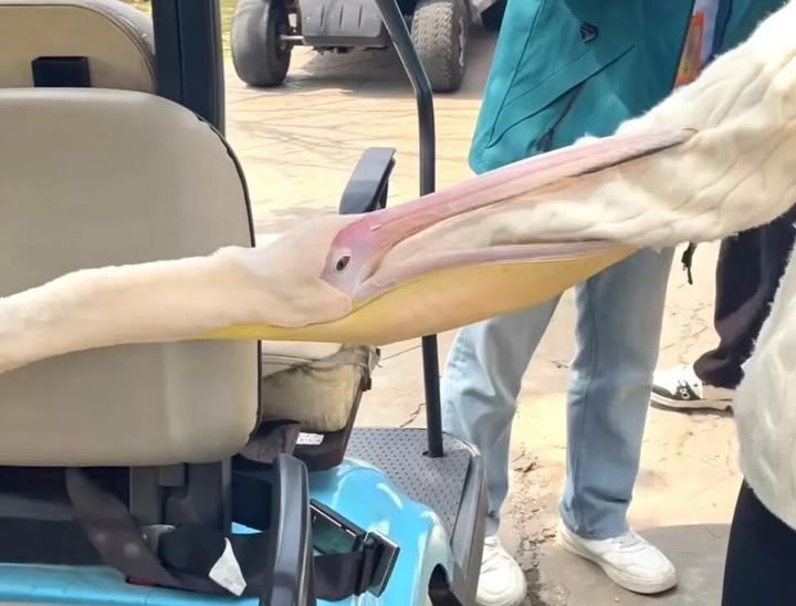 饲养员提醒,成年鹈鹕咬合力较强,若被咬到可能造成疼痛甚至轻微伤,因此建议游客切勿用手直接触碰鹈鹕头部或喙部。
