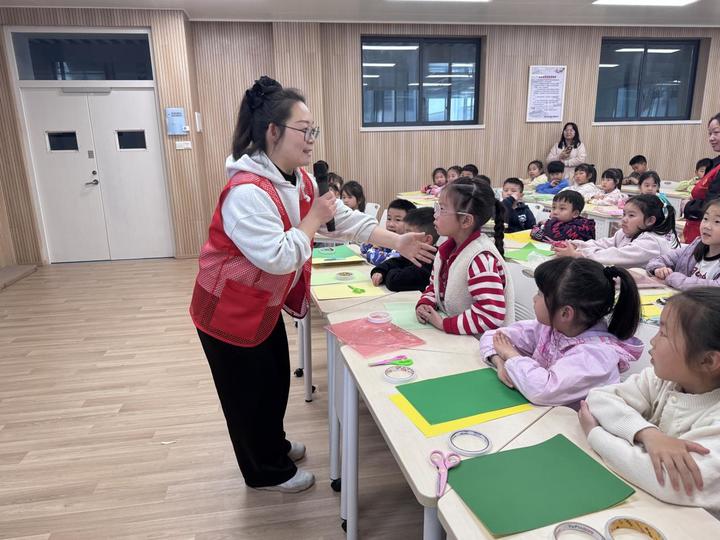 最热闹的环节当属手工制作。在“幸福妈妈+”志愿者的手把手指导下,孩子们拿起彩纸、剪刀,认真折叠、裁剪、卷曲,一朵朵金黄的纸菊花在指尖绽放。“我要把这朵菊花送给我的太爷爷,告诉他我会好好学习。”一名孩子捧着自己的作品,眼神里满是认真。志愿者们一边指导,一边和孩子们聊着清明的习俗,“我们做菊花,是为了表达对先辈的思念,现在我们更要倡导文明祭扫,用鲜花寄哀思,守护绿色家园。”