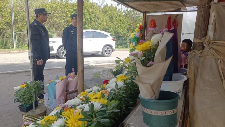在道路保畅方面,执法队员联合交警部门,在侨兴街与凤莲大道交叉口、孝恩园入口等关键节点设置临时指引牌,引导车辆有序停放,避免拥堵。针对侨兴街沿线可能出现的摆摊占道行为,执法队员采取“先劝后处、柔性执法”原则,耐心劝导规范经营,严查违规售卖易燃易爆品行为,全力保障祭扫通道平安。