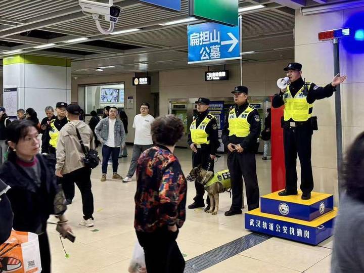 为保障大家出行安全,武汉轨道公安充分发挥“江城义警——平安地铁联盟”作用,提前对地铁商铺、出入通道等重点部位开展安全检查,及时发现、整治各类问题隐患,严格落实“逢包必检、逢液必查、逢疑必问”和“人人安检、人物同检”措施,坚决防止违禁物品进站上车。