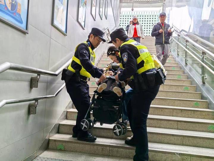 4月2日11时30分许,民警刘明勇、尹超和辅警闵瑞在地铁4号线永安堂站执勤时发现八旬的徐爹爹步履蹒跚,神情疲惫。当天他独自前往扁担山公墓祭扫,途中因体力透支无法行走。刘明勇、尹超和闵瑞立即找来轮椅,将爹爹转移至站厅休息,并多方查询联系上其家人。12时30分许,徐爹爹的家人赶到地铁站。民警一路护送爹爹及其家人至附近的公交站,直至其安全乘车离开。