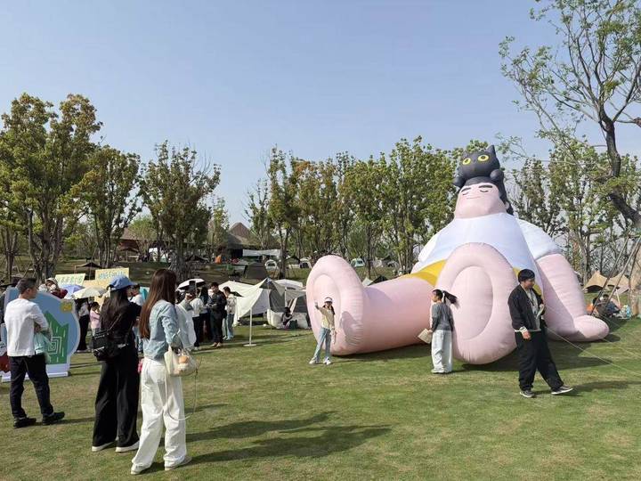步入园区,森林剧场旁的天梯草坪上,孩子们正尽情奔跑嬉戏。草坪不远处,一场别开生面的“圈圈圆圆咖啡生活节”正吸引着络绎不绝的游客。“此地此圈”“豆有意思”“浮岛一下”三大主题场景渐次展开,来自30多个品牌的特色摊位错落分布在林间。最吸引眼球的当属“咖tutu”与“呼tutu”水陆双轨巡游号,游客时而乘巡游车穿行于森林市集,时而换乘游船徜徉于碧波荡漾的朱家河,水陆交替间,春日风光尽收眼底。
