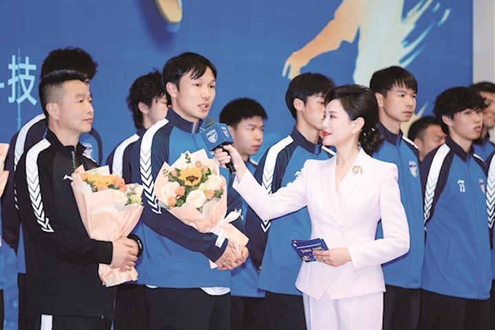 出征仪式上,武汉队全体将士集体亮相。这支球队由湖北本土名宿赵立春担任主教练,他深耕青训多年,熟稔武汉足球脉络,是球队最坚实的掌舵人。谈到球队备战时,他说:“我们队伍以去年省运会的阵容为基础,调整了职业球员配置,加入5名大学生,通过观看‘汉超’比赛,挑选了适合的社会报名球员和青少年球员加入。目前备战正按计划一步步推进,每一场比赛我们都将全力以赴,争取捧起冠军奖杯。”