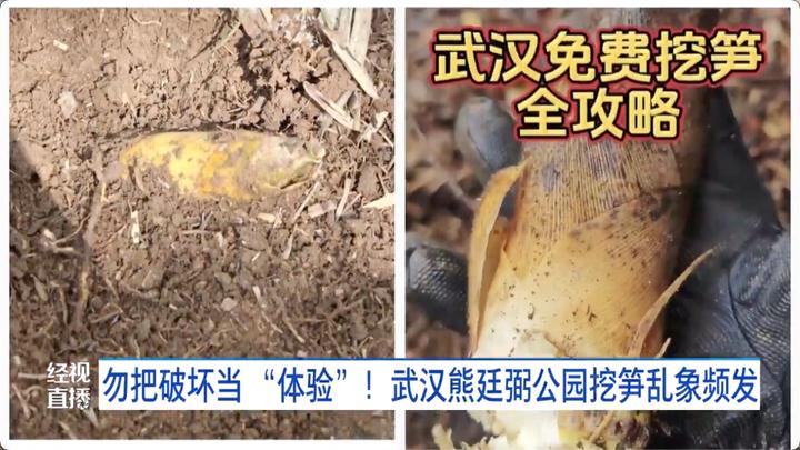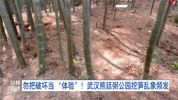 在武汉市江夏区熊廷弼公园,一片原本茂密的竹林如今已是满目疮痍。市民甘先生告诉经视直播记者,近期不少家长带着孩子前来挖笋,甚至将其当作“亲子体验”,令他深感忧虑。