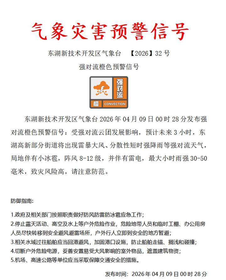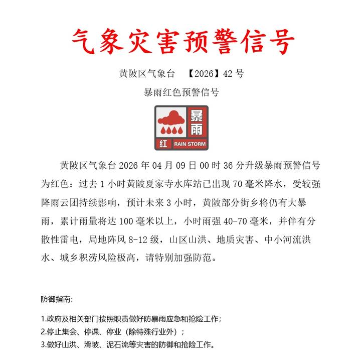 黄陂区气象台再发预警