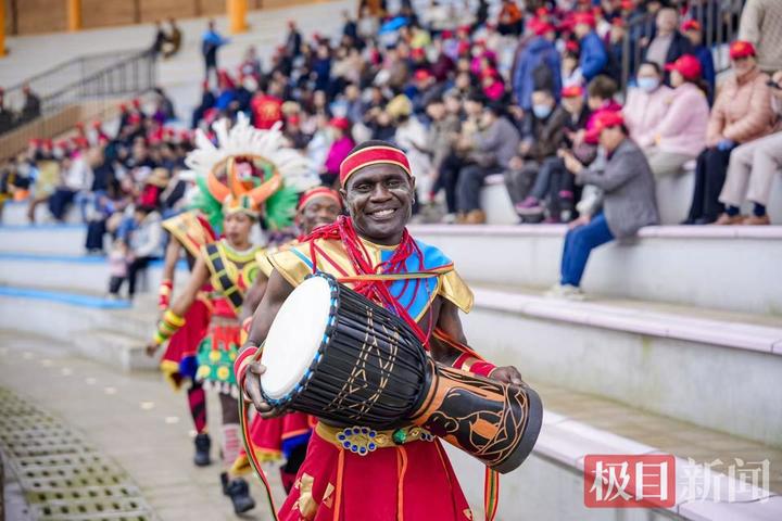 互动现场,有游客喊出奥斯丁的名字,他会立刻回应“哈喽”。遇到好奇他手鼓的小朋友,他便将手鼓放在孩子身前,让其自己拍打,近距离感受鼓声。许多孩子原本对这位黑皮肤的演员大叔感到好奇,接触后才发现他竟是如此亲和。