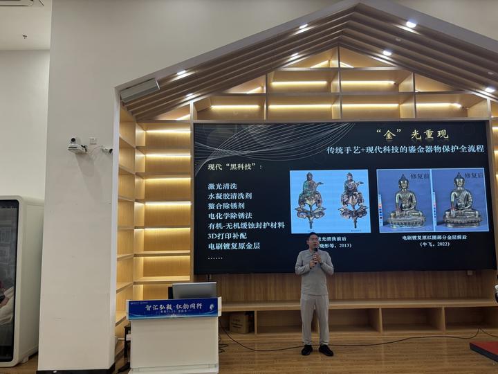 学术分享环节亮点突出,五场高质量科研分享覆盖多领域,既有高校教授解读低空经济、光化学等前沿科技,也有企业专家分享工业机器人应用成果,还有北大博士解码古代鎏金工艺,兼具学术深度与科普趣味。