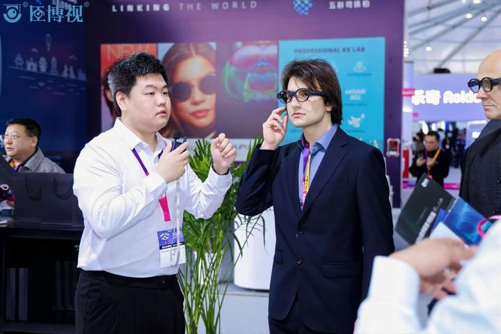 外宾试戴智能眼镜。