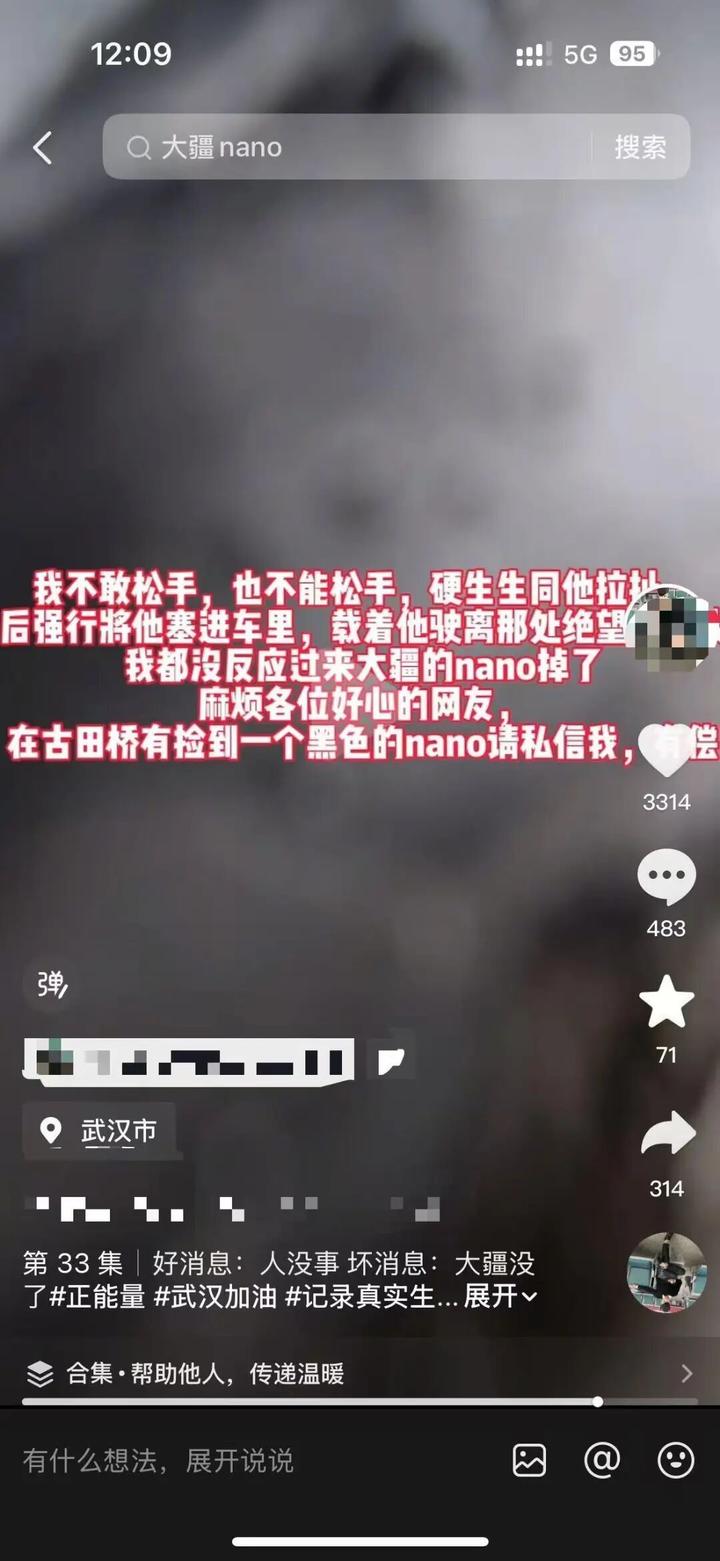 在王先生的视频账号里,有许多“搭把手”的瞬间。此前,他曾遇到过武汉市民电动车没电、车胎破了的情况,他都会主动上前帮助。“我就像武汉的‘岔巴子’。”王先生说,“有些人,能拉一把就拉一把。”