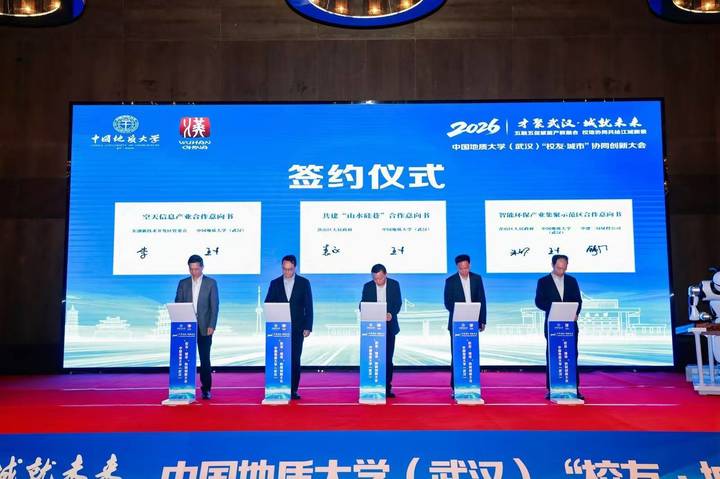 校友们的热情,在武汉有着实实在在的承载空间。会上,中国地质大学(武汉)与东湖高新区在空间信息产业方面,与洪山区在“硅巷”共建方面,与青山区在打造智能环保产业聚集区方面签订了专题合作协议。