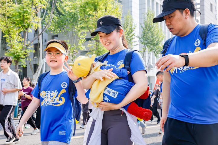 赛道另一端,2005级校友夫妇带着孩子走完了健行组3公里趣味路线。夫妻俩同是复合材料与工程专业同学,毕业后在武汉安家。“接到母校健步走通知,我们二话不说就报名了。”妻子说,“带孩子回来,就是想让他看看爸爸妈妈当年读书的地方,感受一下理工大的活力。”丈夫补充道:“走完全程,孩子比我们还兴奋!”