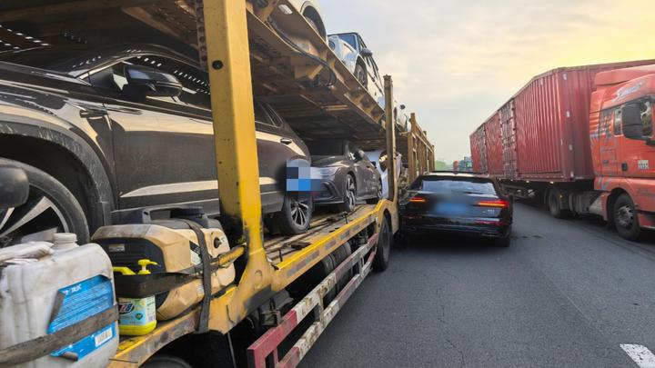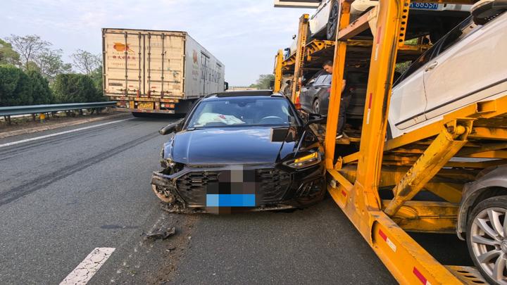 4月15日17时22分许,武汉绕城高速柏泉段,驾驶员彭某在超车道上行驶时,车辆突然向右发生偏转,车头斜着冲向行车道中正常行驶的轿运车车厢,事故造成车辆严重受损,幸运的是没有造成人员受伤。