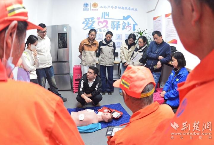 荆楚网(湖北日报网)讯(通讯员王莉蓉、赵兰)4月21日,国网宜昌供电公司城区供电中心工会爱心驿站内,一场AED自动体外除颤器使用专项培训吸引20余名环卫工人、外卖小哥参加。这是该驿站配置AED设备后的首场实操教学,标志着这座“暖心驿站”升级为具备应急救助功能的“生命守护站”。