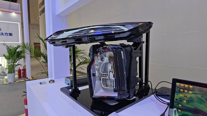 湖北日报讯(记者张竞恒、黄洁如)4月23-25日,2026九峰山论坛在武汉光谷科技会展中心举行,武汉星曦光科技有限公司展出的一款可主动投影的“智慧车灯”。