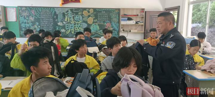 4月23日,湖北枣阳市公安局北城派出所组织民警进校园开展学生违禁物品专项安全检查行动。