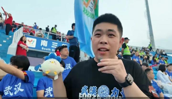现场宜昌球迷对着镜头大喊: “武汉武汉,还我江豚”,武汉球迷直接拿出一只蒜鸟幽默回应:“蒜鸟蒜鸟!你们踢不赢武汉滴!”隔着屏幕都能感受到湖北球迷的幽默感!