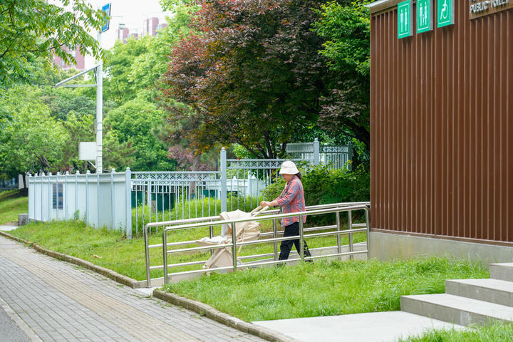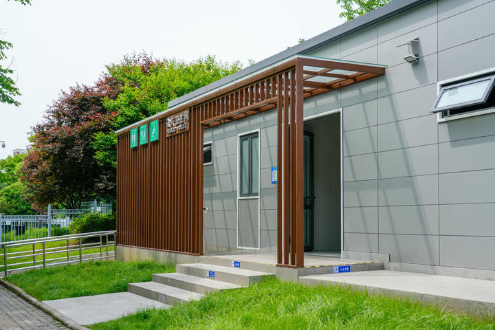 据悉,该公厕采用装配式钢结构建造,施工高效且绿色环保,整体结构坚固耐用、外观简约大气,与晒湖公园周边自然景致、城市风貌相融合,成为街头一道实用又亮眼的“风景线”。