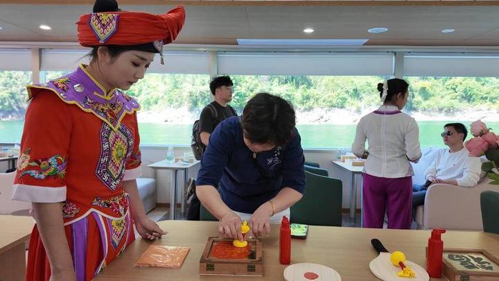 据湖北清江画廊旅游开发有限公司副总经理严立兵介绍,该游船人均使用面积达2平方米以上,设有一等舱、二等舱及三个独立包间。通过土家歌舞表演、山水互动、土家文化展示等文旅融合项目,为游客提供沉浸式体验。杭州游客王雁玲表示:“游船内的沙发及实践体验活动,既符合现代年轻人对美景欣赏的需求,又兼顾了体感舒适度,让人眼前一亮。”