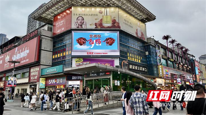 近日,长沙五一广场、黄兴广场步行街的夜空被一只“巨无霸”酱板鸭点亮。湖南老字号品牌金湘权携手红网时刻LED联播网,上演了一场硬核又萌趣的3D裸眼大屏秀。