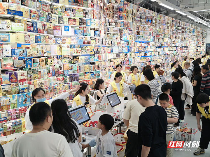 红网时刻新闻4月19日讯(记者 张必闻 秦楼)4月18日,周末,长沙迎来难得的晴好天气。芙蓉广场的“零食王国”人气走高,记者现场体验,入场排队时间在一小时左右,馆内人流密集。