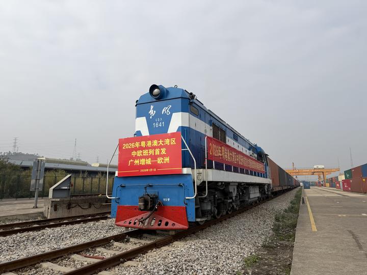 2026年1月1日上午,粤港澳大湾区2026年首列中欧班列,从广州东部公铁联运枢纽(增城西站)发出。列车满载家居用品、冬季保暖物资等“广货”,经霍尔果斯口岸驶向欧洲,全程预计14天。
