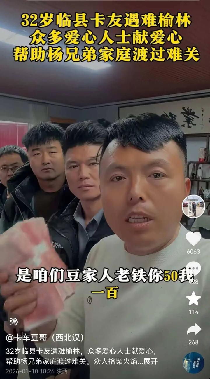 “我个人捐了2000元,还帮7名卡友捐了750元。”11日下午4时许,“陕北榆林轮胎哥”高雷雷告诉极目新闻记者,他们已经捐完款正在返回陕西榆林的途中。因为杨师傅英年早逝,离异留下两个年幼的孩子,确实需要帮扶。目前全国各地卡友纷纷捐款,50、100、200、500、1000元不等,总共募捐了18万元左右。
