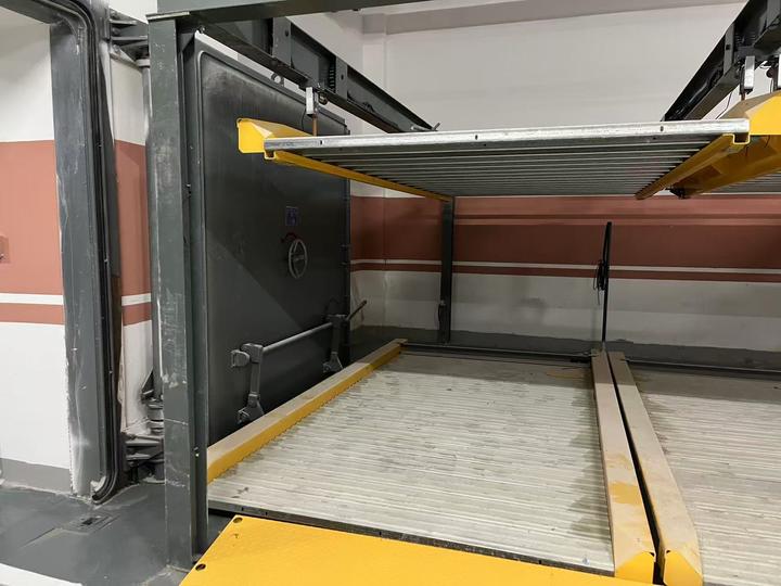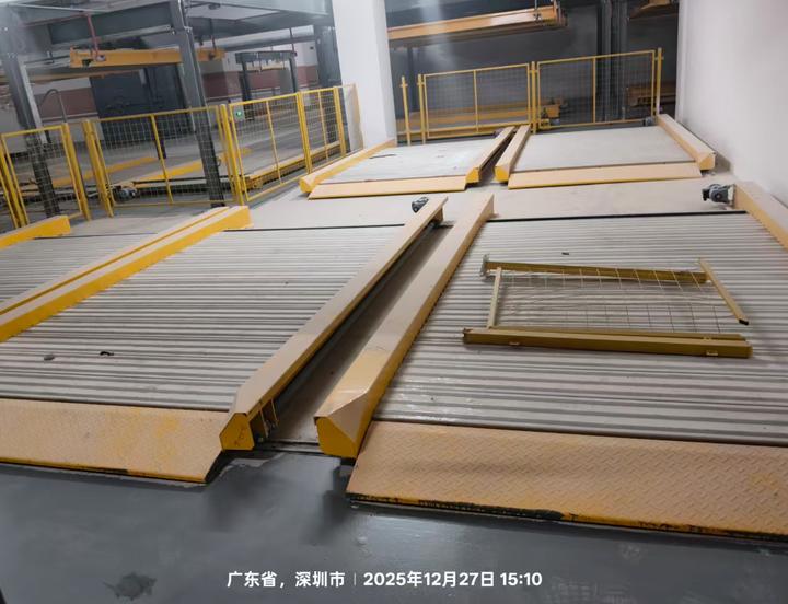 在地下三层的一个角落里,有一处明显未建设完成的机械车位,满满当当摆了五个车位底座,但并未搭建车位立体框架。业主对此也感到无语:“这几个车位是拿来凑数的吗?”