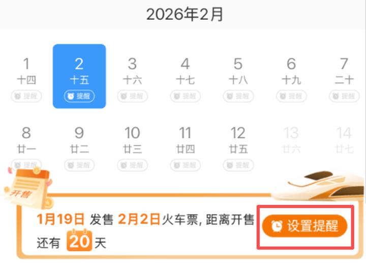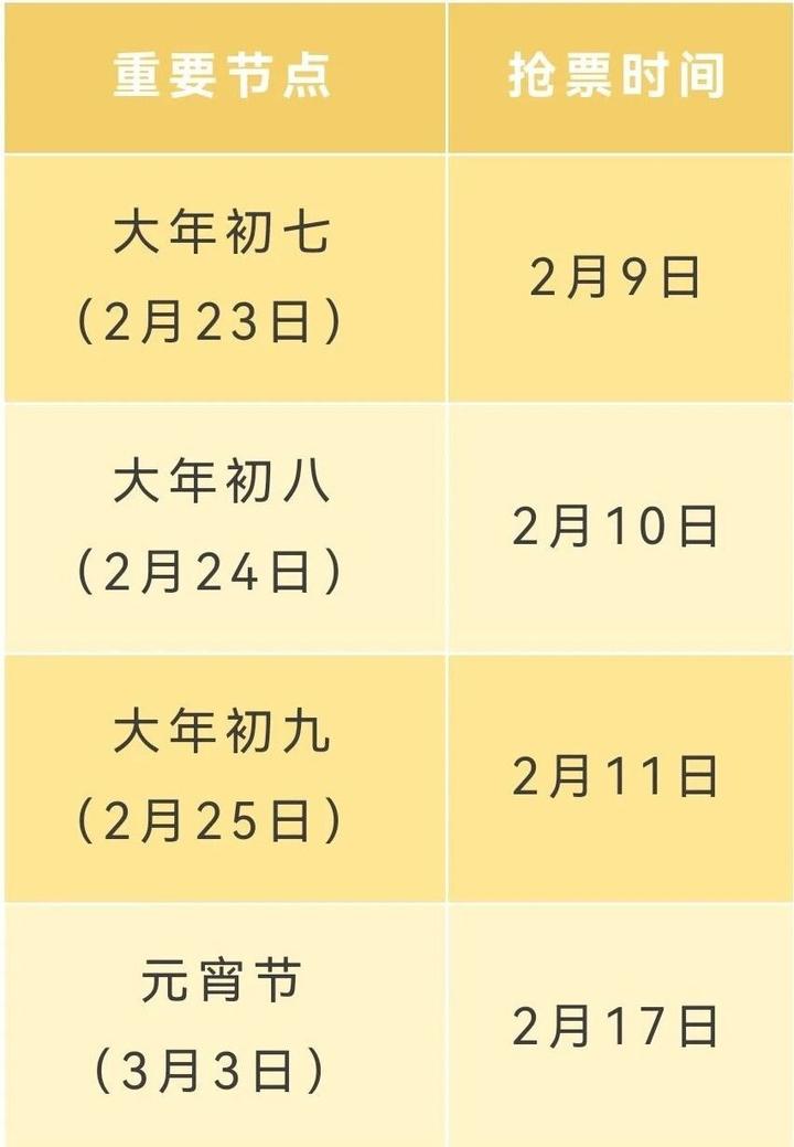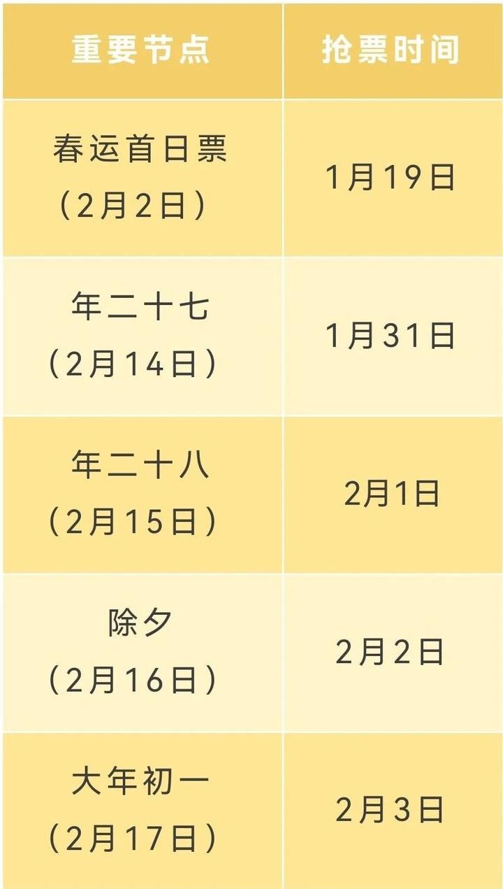 中国铁路也发出最新购票指引,按铁路火车票提前15天发售规则,2026年1月19日(下周一)将开售春运第一天火车票。2月1日将开售春节假日首日火车票。2月2日将开售除夕当天火车票。