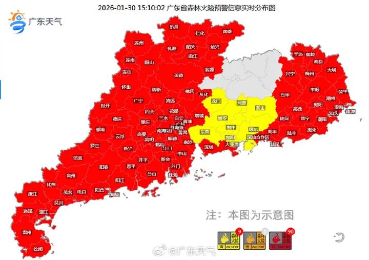 根据省森防办提醒,1月以来广东省大部分地区持续干旱,缺少有效降水,森林火险风险较高,森林防火形势极其严峻。在此,提醒广大市民群众严格遵守当地禁火规定,进山不带火,入林不吸烟,不因一时疏忽大意引发山火。