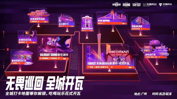 当广府年味与电竞潮流在广州相遇,一场为期四周、覆盖全城的沉浸式体验火热展开。据南方+记者日前获悉,V26无畏契约城市巡回首站暨2026无畏契约冠军巡回赛CN联赛启点赛正式登陆羊城。活动以“电竞+游戏+文旅”为核心理念,结合大湾区文旅战略,与广州市“广货行天下”大型活动联动共振,即日起至2月16日期间,陆续呈现丰富多元的内容:从VCT CN顶尖赛事对决、广州塔“花式开瓦”潮流派对,到一江两岸光影盛宴、无畏主题游轮巡游,以及全城商圈联动共创,为广大市民和游客打造一个可观、可玩、可沉浸的活力新春现场。