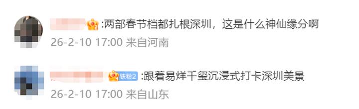 两部作品同样取景于深圳、春节档上映,这份跨越四年的专属羁绊,让网友们直呼:“易烊千玺这波,真的让我也想去深圳打卡了!”